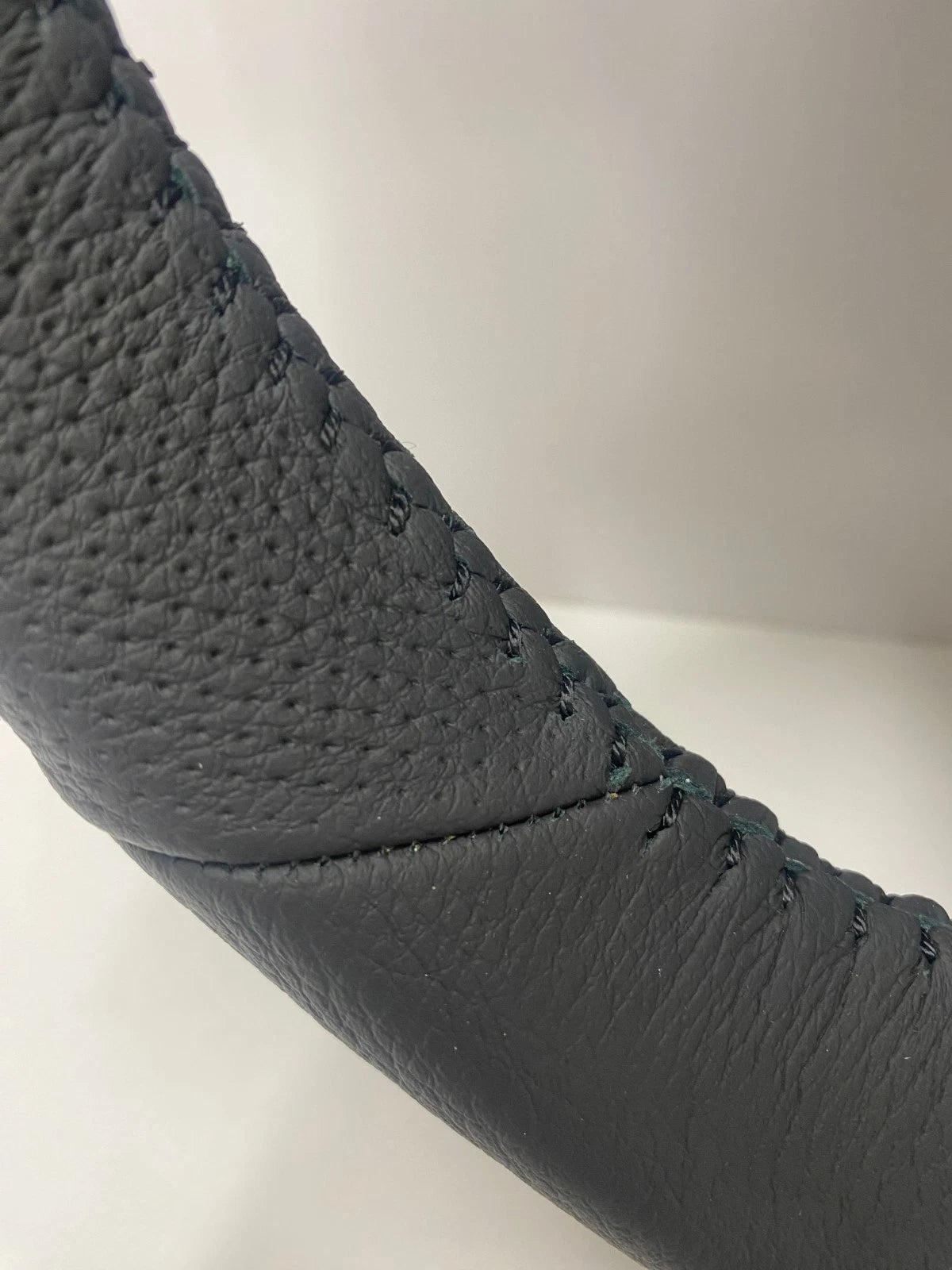 Black Leather with Black stitching with Perforated Leather Grip areas.