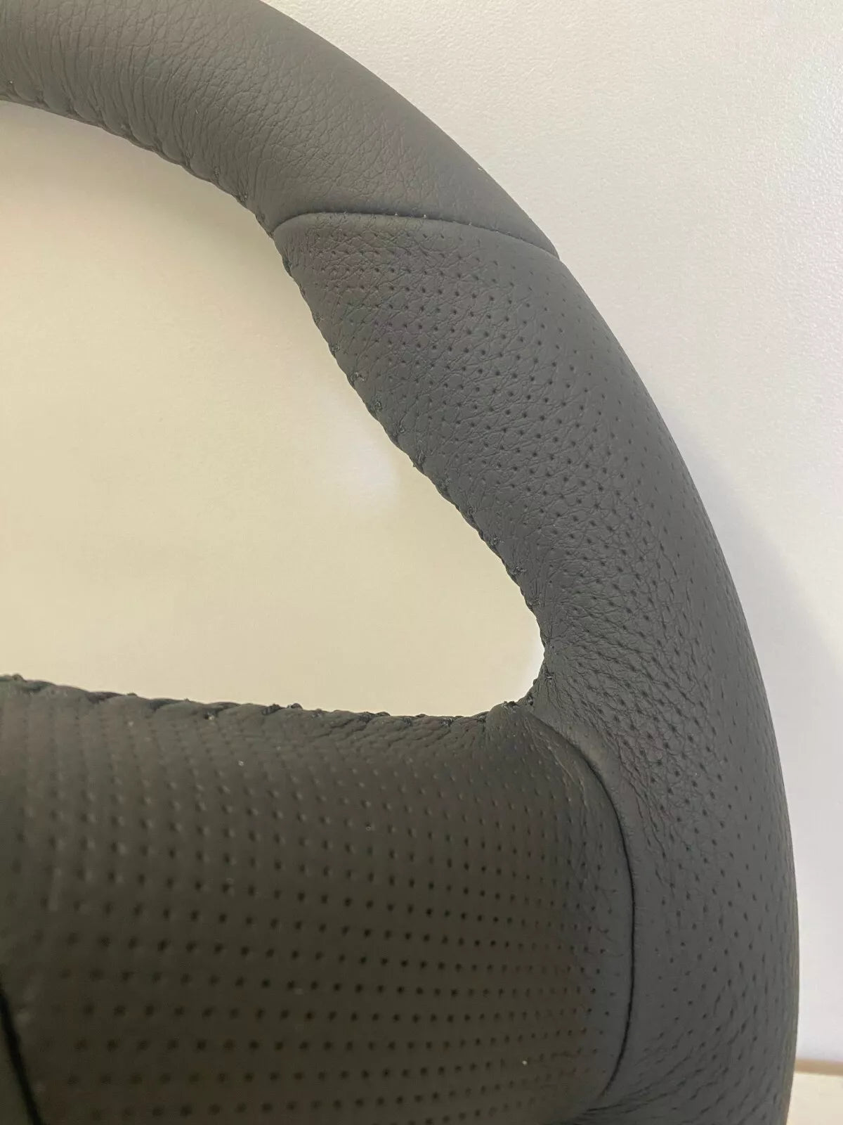 Black Leather with Black stitching with Perforated Leather Grip areas.